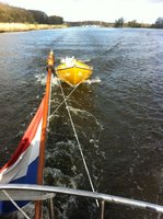 Inmiddels vaar ik soms ook met een elektrisch aanhangmotortje.